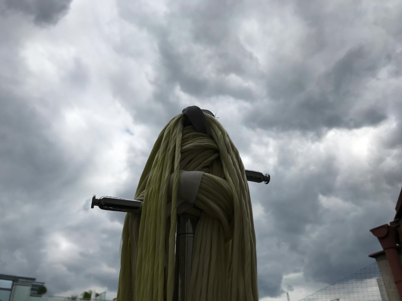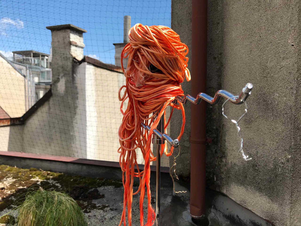 ↓ Projection in the attic of an apartment building in Vienna, June 2020