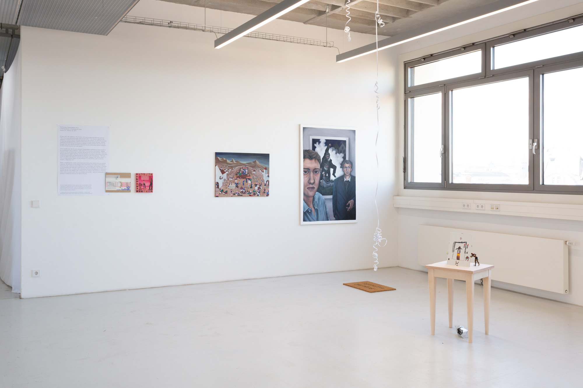While considering the complex and complicated relationship between the critic and the criticized, The Kristian Vistrup Madsen Show (TKVMS) materializes some aspects of the themes discussed at the conference and in Madsen’s text. Accordingly, the exhibition is intended to be something other than just a selection of works corresponding to the principles of a thematic group show: it explores the ambivalence between the adaptation to a discursive framework and what Madsen calls "artistic art." In contrast to the numerous exhibitions about critics in recent years, this is an exhibition for a critic – and yet a continuation of the productive difference between art and its criticism.